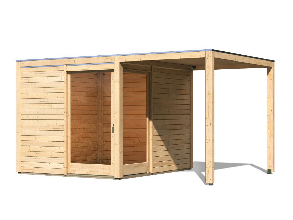 Drevený domček KARIBU QUBU ECK 83316 natur + prístavok 2 m LG1892