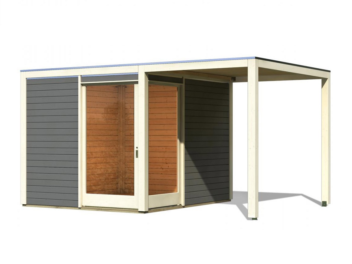 Drevený domček KARIBU QUBU ECK 83317 terragrau + prístavok 2 m LG1910
