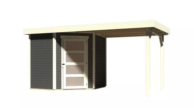 Drevený domček KARIBU SCHWANDORF 3 + prístavok 240 cm (77739) terragrau LG3892