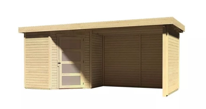 Drevený domček KARIBU SCHWANDORF 3 + prístavok 280 cm vrátane zadnej a bočnej steny (77744) natur LG3901