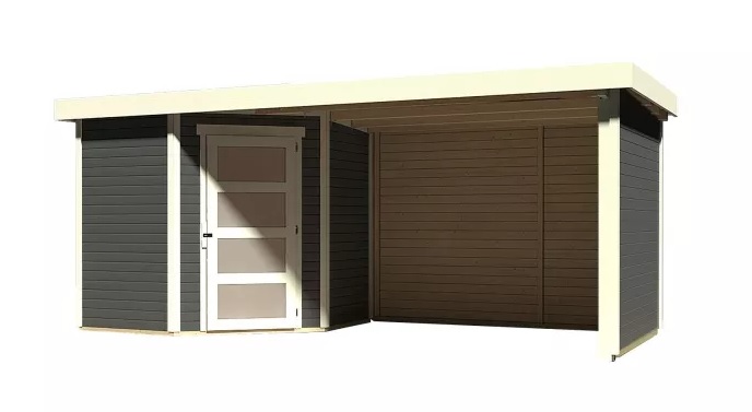 2088.37 Drevený domček KARIBU SCHWANDORF 3 + prístavok 280 cm vrátane zadnej a bočnej steny (77745) terragrau LG3902