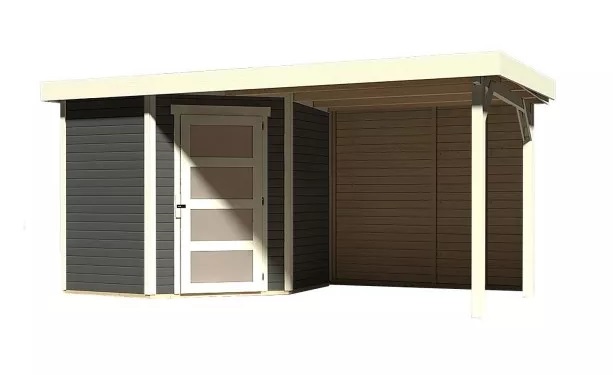 1818.62 Drevený domček KARIBU SCHWANDORF 3 + prístavok vrátane zadnej steny 240 cm (9211) terragrau LG3894