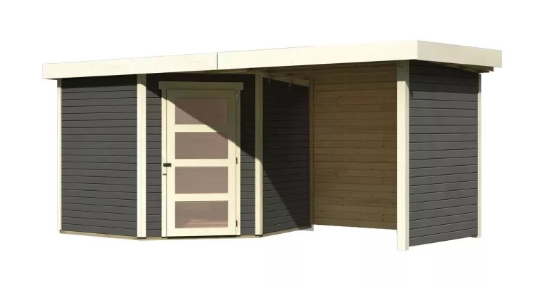Drevený domček KARIBU SCHWANDORF 5 + prístavok 240 cm vrátane zadnej a bočnej steny (77749) terragrau LG3911
