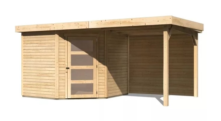 Drevený domček KARIBU SCHWANDORF 5 + prístavok 240 cm vrátane zadnej steny (9214) natur LG3908