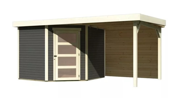 Drevený domček KARIBU SCHWANDORF 5 + prístavok 240 cm vrátane zadnej steny (9215) terragrau LG3909