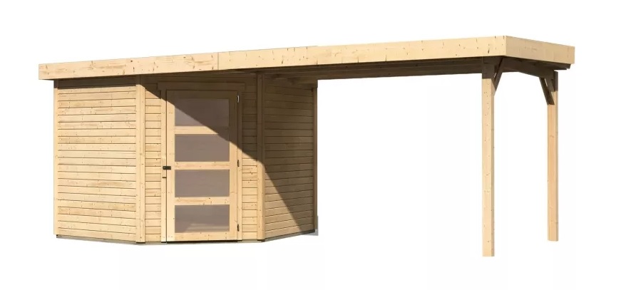 1557.57 Drevený domček KARIBU SCHWANDORF 5 + prístavok 280 cm (77750) natur LG3914