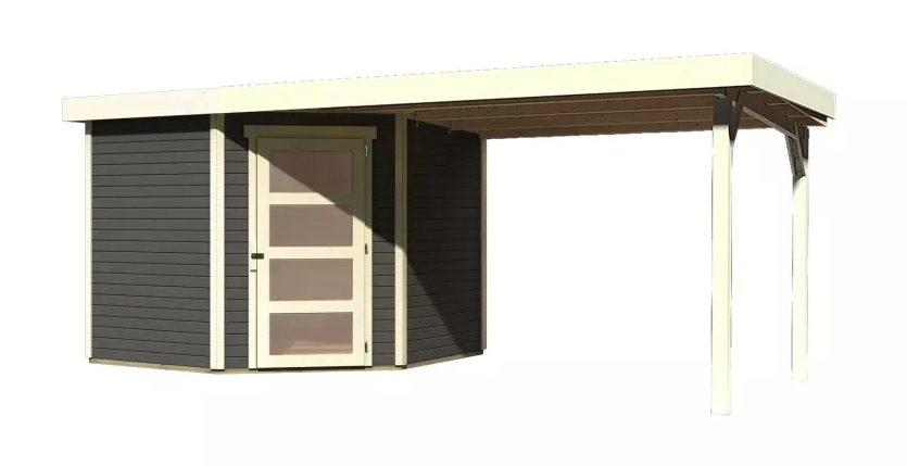 Drevený domček KARIBU SCHWANDORF 5 + prístavok 280 cm (9217) terragrau LG3915