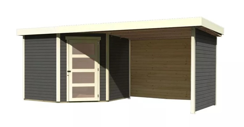 Drevený domček KARIBU SCHWANDORF 5 + prístavok 280 cm vrátane zadnej a bočnej steny (9220) terragrau LG3919