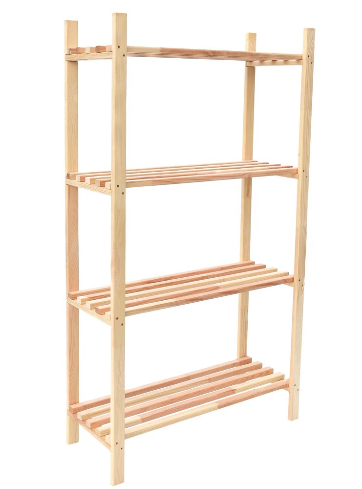 : RojaplastPolicový regál z prírodného borovicového dreva. Každá zo 4 políc unesie až 30 kg.