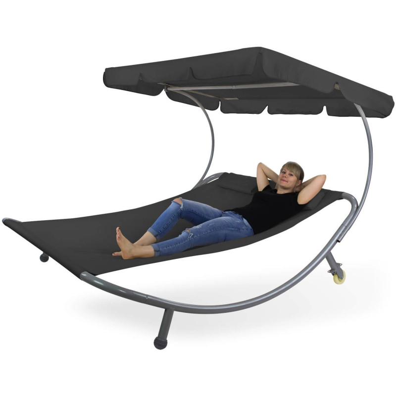 : DEMAZáhradné - plážové lehátko. Oceľový rám s povrchovou úpravou práškovaním, plynulé nastavenie striešky. Dve odnímateľné podušky, umývateľný poťah, vrátane transportných koliesok.