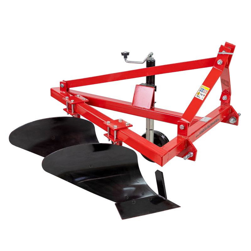 Dvojradlicový pluh na záhony je vhodný na malé traktory s výkonom od 15 HP. Jednoduchá konštrukcia umožňuje kyprenie a obracanie pôdy bez kameňov. Bežné trojbodové upnutie pre kategóriu I, vedenie klznými unášačmi, plynule nastaviteľný. Dvojradlicový pluh na záhony je vhodný na malé traktory s výkonom od 15 HP. Jednoduchá konštrukcia umožňuje kyprenie a obracanie pôdy bez kameňov. Bežné trojbodové upnutie pre kategóriu I, vedenie klznými unášačmi, plynule nastaviteľný. Vymeniteľné radlice s deflektorom, plynule nastaviteľné oporné koleso pomocou ručnej kľuky.