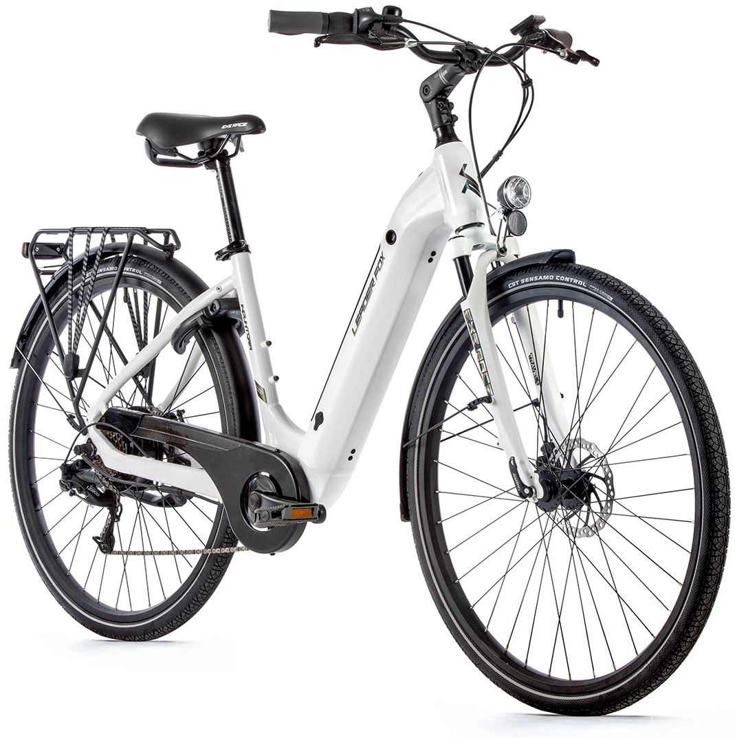 : Leader FoxElektrobicykel, rám 16,5", veľkosť kolies 28", 7 rýchlostí, odporúčaná výška cyklistu 155–175 cm, mechanické kotúčové brzdy, nosnosť 110 kg, farba biela.