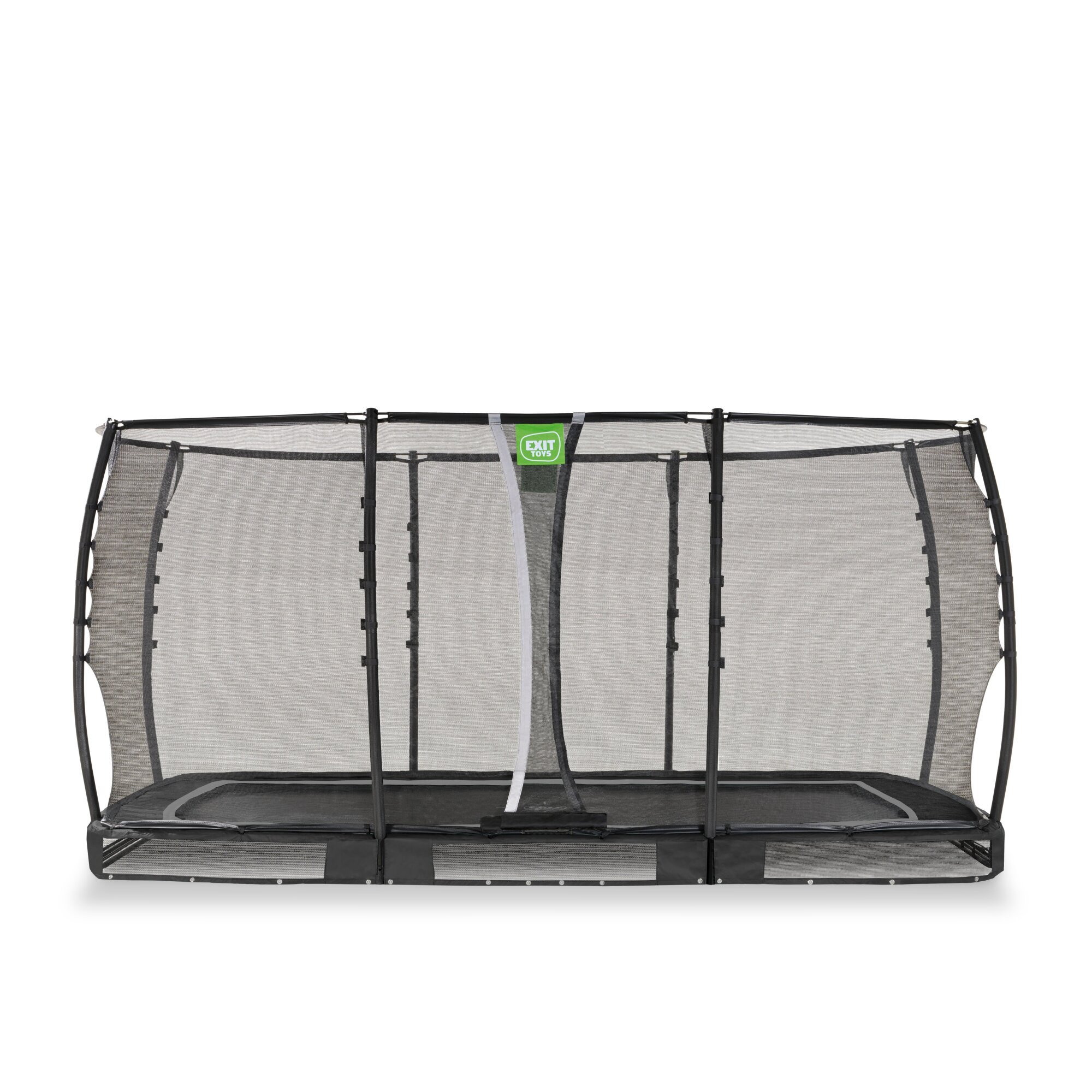 : EXIT TOYSTrampolína s ochrannou sieťou Allure Premium od holandskej značky Exit Toys je kompaktná trampolína s rozmerom 244*427 cm, ktorá sa čiastočne inštaluje do zeme, vďaka čomu ponúkne celej rodine nízky a bezpečný vstup.