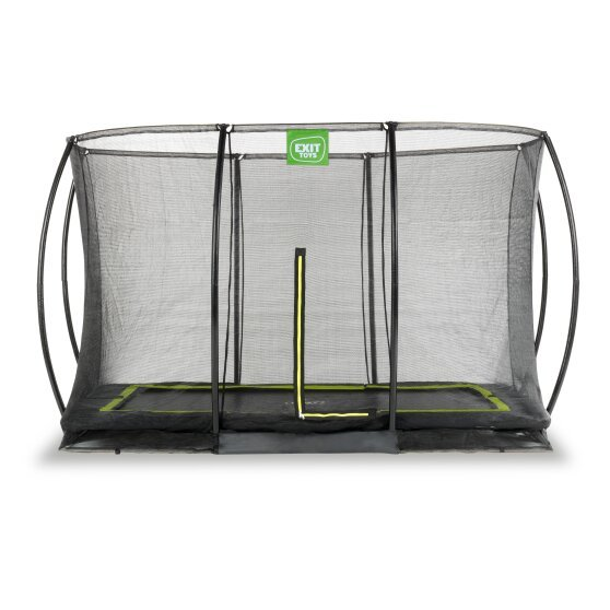 : EXIT TOYSTrampolína s ochrannou sieťou Silhouette od holandskej značky Exit Toys je kompaktná trampolína s rozmermi 244*366 cm, ktorú umiestnite na zem kdekoľvek vo vašej záhrade. Trampolína je vybavená napnutou bezpečnostnou sieťou, ktorej vchod je vyznačený výrazným fluoreskujúcim zeleným zipsom pre lepšiu viditeľnosť. Okolo plochy na skákanie sa nachádza ochranný matrac, vybavený sieťkou, ktorá pri skákaní zabráni vkĺznutiu chodidla do priestoru s pružinami.