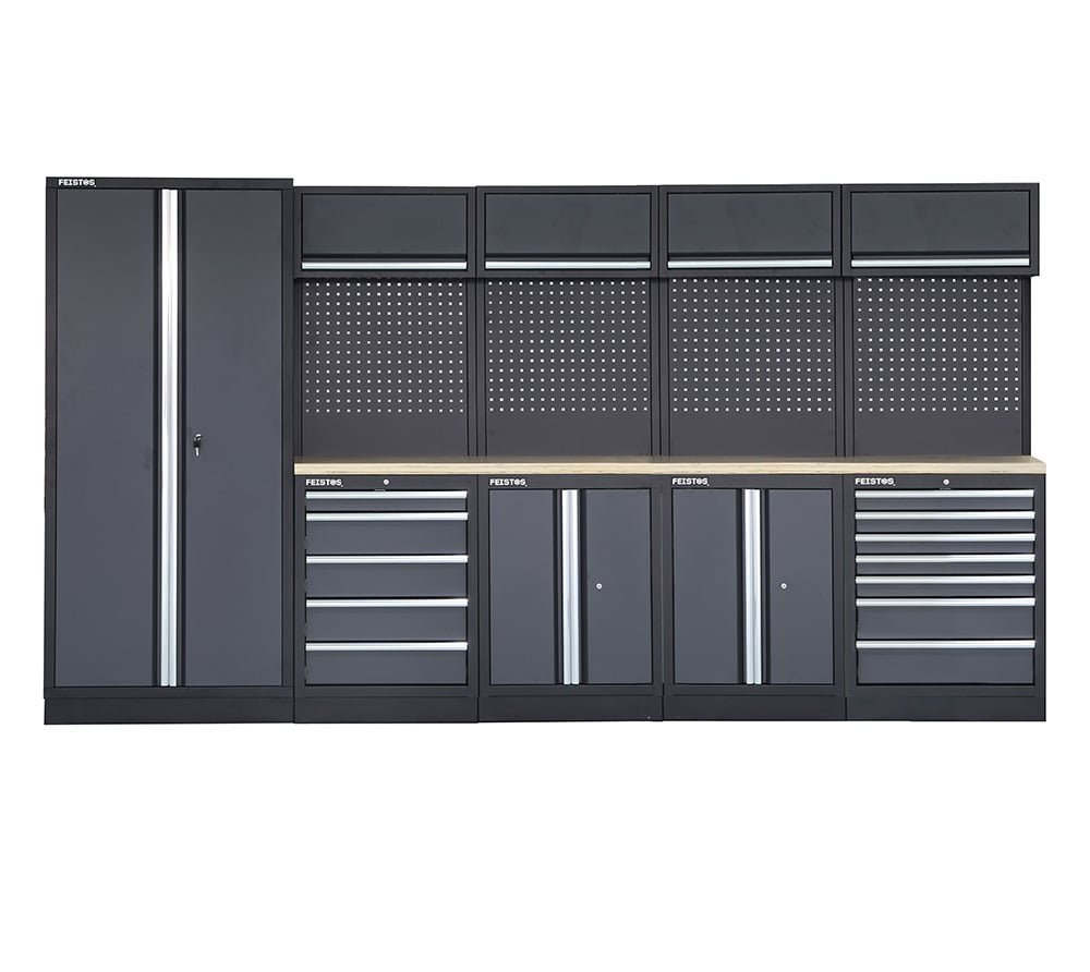 : FeistosŠtýl a úložný priestor pre dielňu s FEISTOS! Séria modulárnych skríň na náradie Apollo je nevyhnutnou výbavou pre hobby remeselníkov, profesionálov a kreatívnych hobíkov. Apollo boduje progresívnou farebnou kombináciou a dokonale zladenými detailmi: lesklé kovové lišty nahrádzajú štandardnú sadu rukovätí a šikovne tak vytvárajú moderný a funkčný akcent.