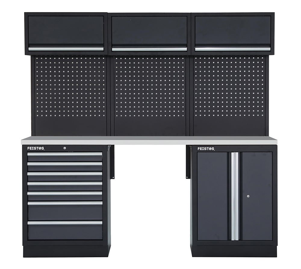 : FeistosŠtýl a úložný priestor pre dielňu s FEISTOS! Séria modulárnych skríň na náradie Apollo je nevyhnutnou výbavou pre hobby remeselníkov, profesionálnych montážnikov a kreatívnych domácich majstrov. Apollo boduje progresívnou farebnou kombináciou a dokonale zladenými detailmi: lesklé kovové lišty nahrádzajú štandardnú sadu úchytiek a šikovne tak vytvárajú moderný a funkčný akcent.