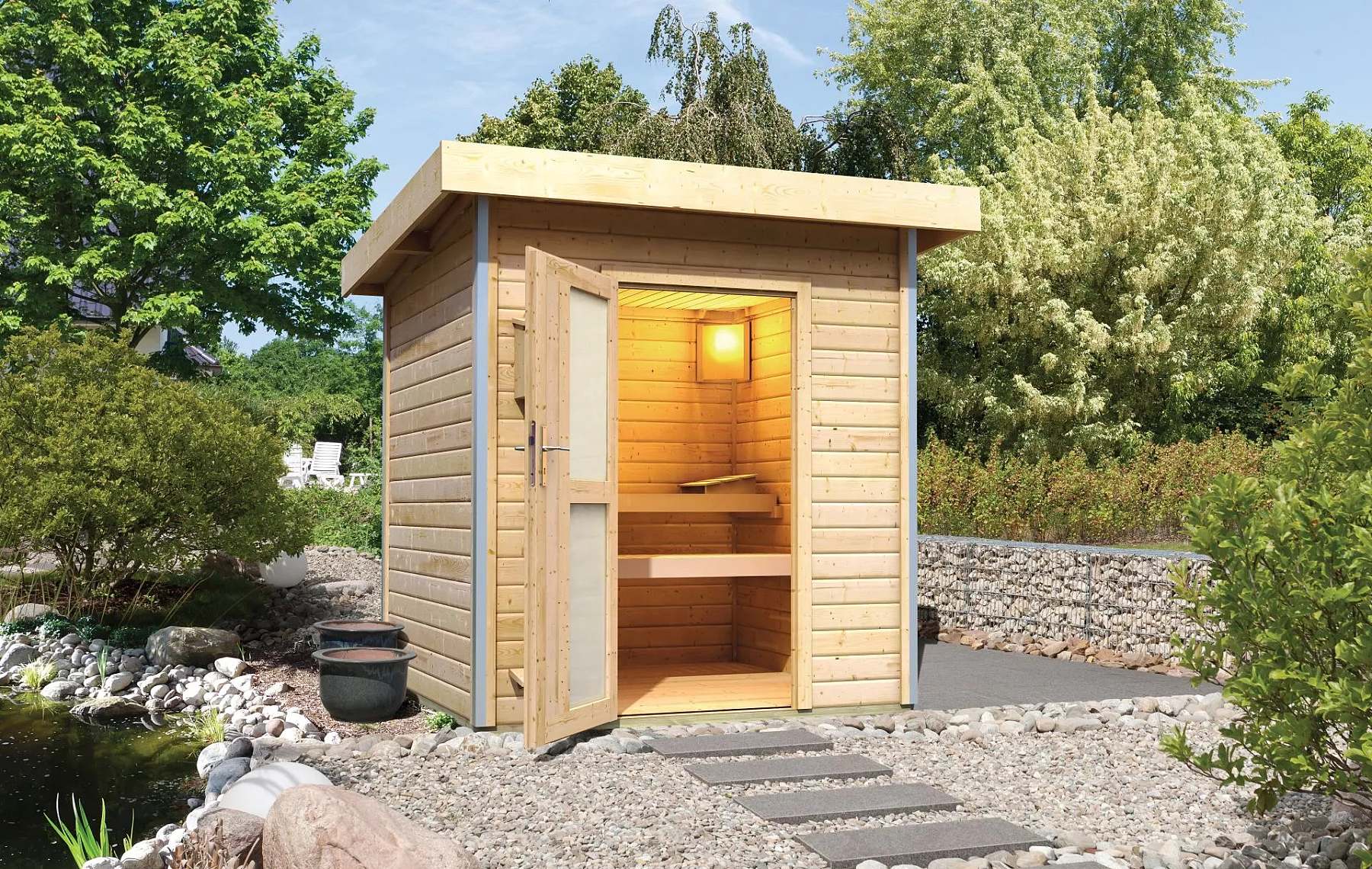 Vonkajší model fínskej sauny pre vašu záhradu.