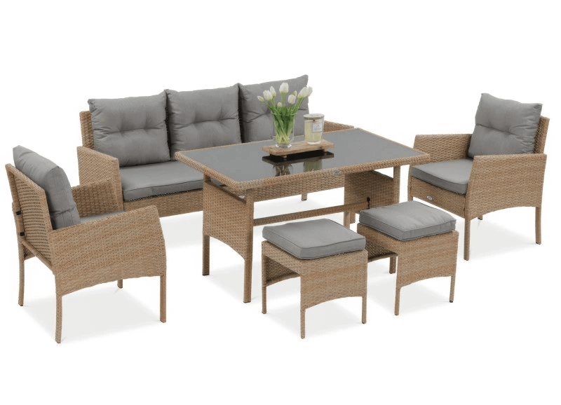 Slnečný deň, letný večer, posedenie s priateľmi alebo chvíľa s knihou v ruke – v každej situácii oceníte komfort a eleganciu, ktorú ponúka technoratanová súprava CORTINA. Kombinuje nadčasový dizajn, výnimočné pohodlie a mimoriadnu odolnosť, vďaka čomu je ideálna do každej záhrady či terasy.