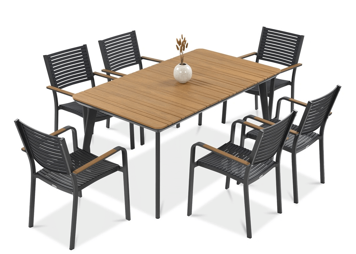 Očarte svoju záhradu štýlom a pohodlím s jedálenskou súpravou TACOMA 160/6 Graphite od Focus Garden. Táto elegantná súprava spája minimalistický dizajn s pevnou a odolnou konštrukciou, ktorá zaručuje nezabudnuteľné letné stretnutia vonku.