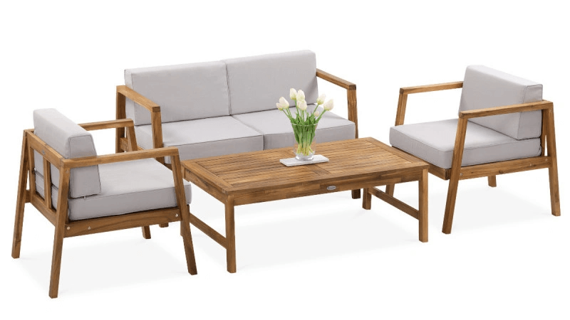 503.25 Záhradný nábytok MALMO CAFFE predstavuje vyvážené spojenie komfortu, odolnosti a moderného dizajnu, vďaka čomu je ideálnou voľbou na terasu, balkón aj do záhrady. Súprava je vyrobená z kvalitného prírodného akáciového dreva s olejovanou povrchovou úpravou, ktorá zvýrazňuje prirodzenú kresbu materiálu a zároveň chráni drevo pred vonkajšími vplyvmi. Výsledkom je nábytok s dlhou životnosťou a nadčasovým vzhľadom, vhodný na každodenné používanie.