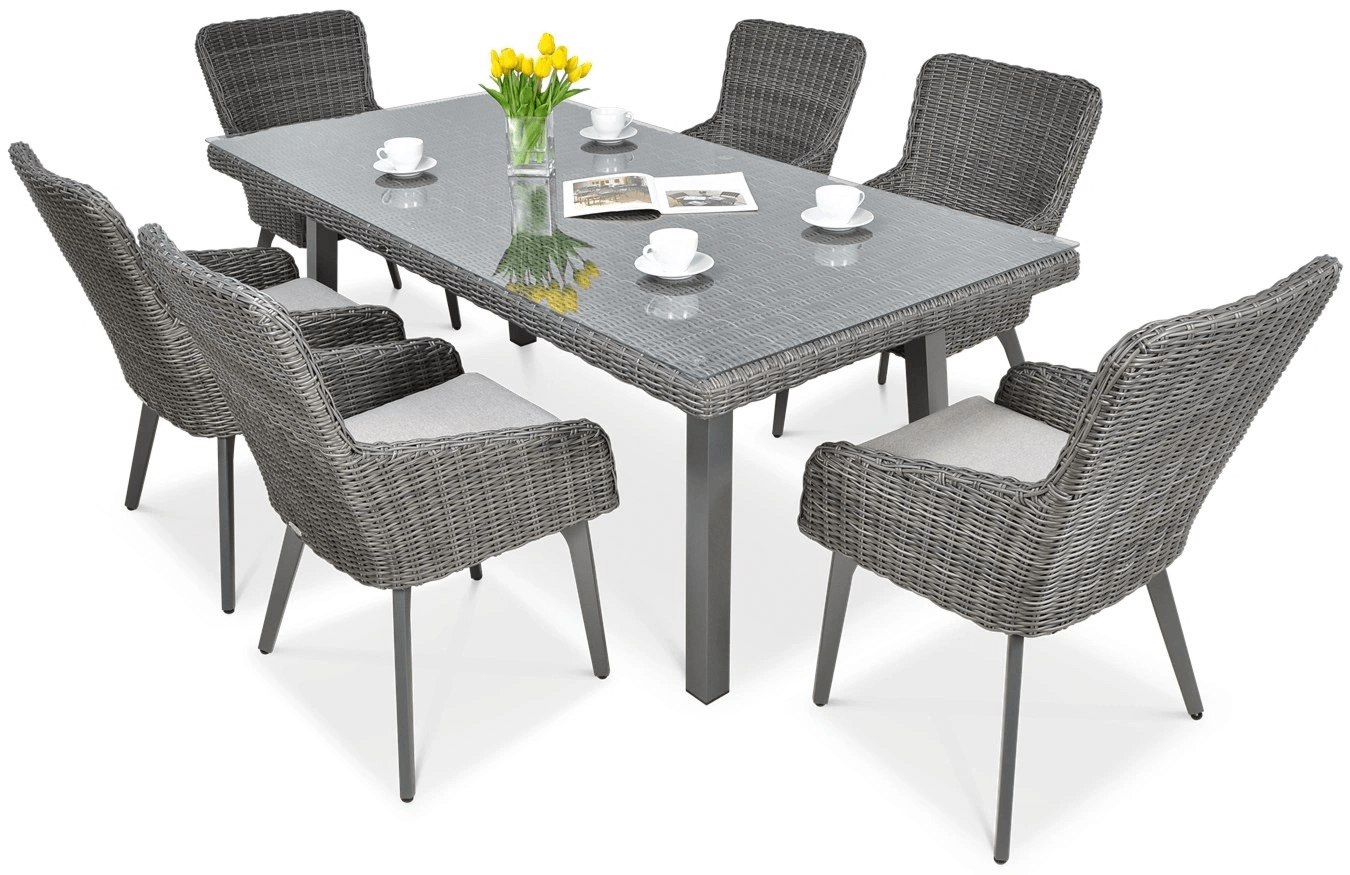 Jedálenská súprava Milano 6/200 je štýlové a funkčné riešenie pre každého, kto hľadá spojenie elegantného dizajnu, komfortu a odolnosti. Svojou univerzálnosťou sa skvele hodí nielen do jedálne či obývačky, ale aj na terasu alebo záhradu.