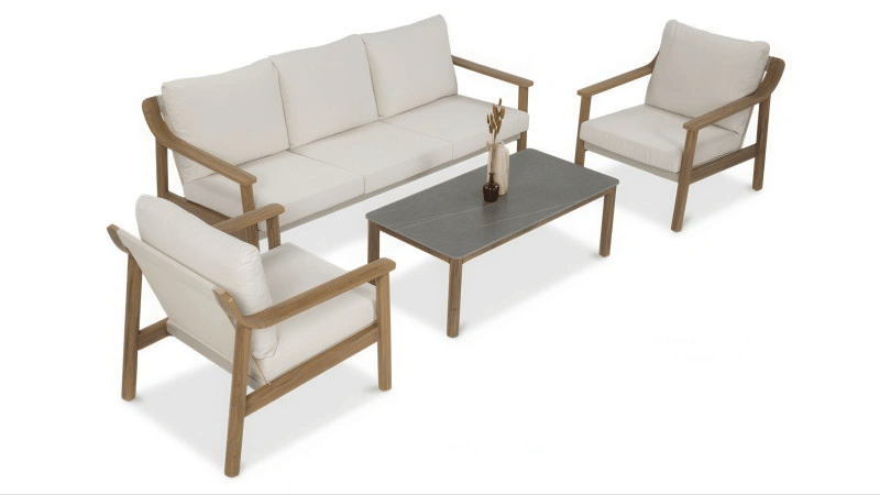 Objavte výnimočný komfort a elegantný štýl s kávovou súpravou Pattaya Caffe Wood Look, ktorá povýši každú terasu, záhradu či zimnú záhradu na miesto oddychu a príjemných stretnutí. Kolekcia pozostáva z dvoch priestranných kresiel, trojmiestnej pohovky a dizajnového konferenčného stolíka, pričom každý prvok je navrhnutý s dôrazom na detail, odolnosť a estetiku.