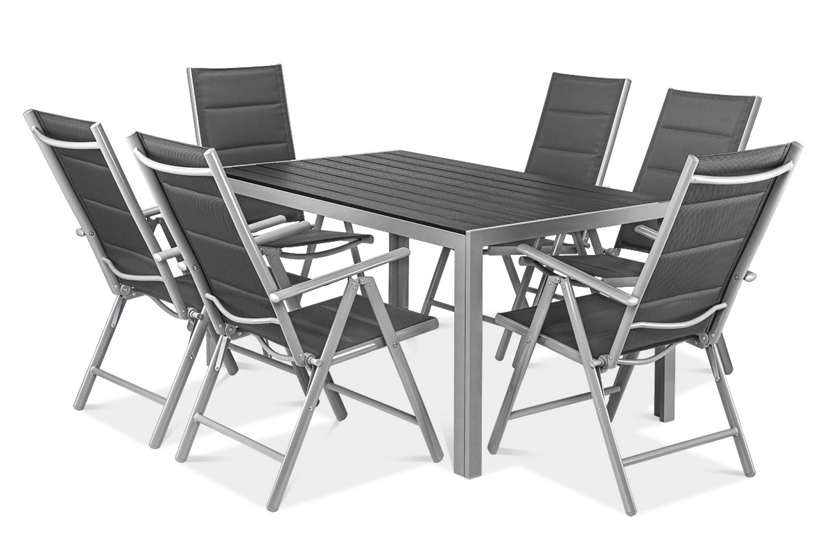 Čierno-strieborná súprava SYDNEY je vynikajúcou voľbou pre tých, ktorí si cenia moderný dizajn, pohodlie a odolnosť. Táto 7-dielna súprava je navrhnutá pre maximálne pohodlie a odolnosť voči meniacim sa poveternostným podmienkam.