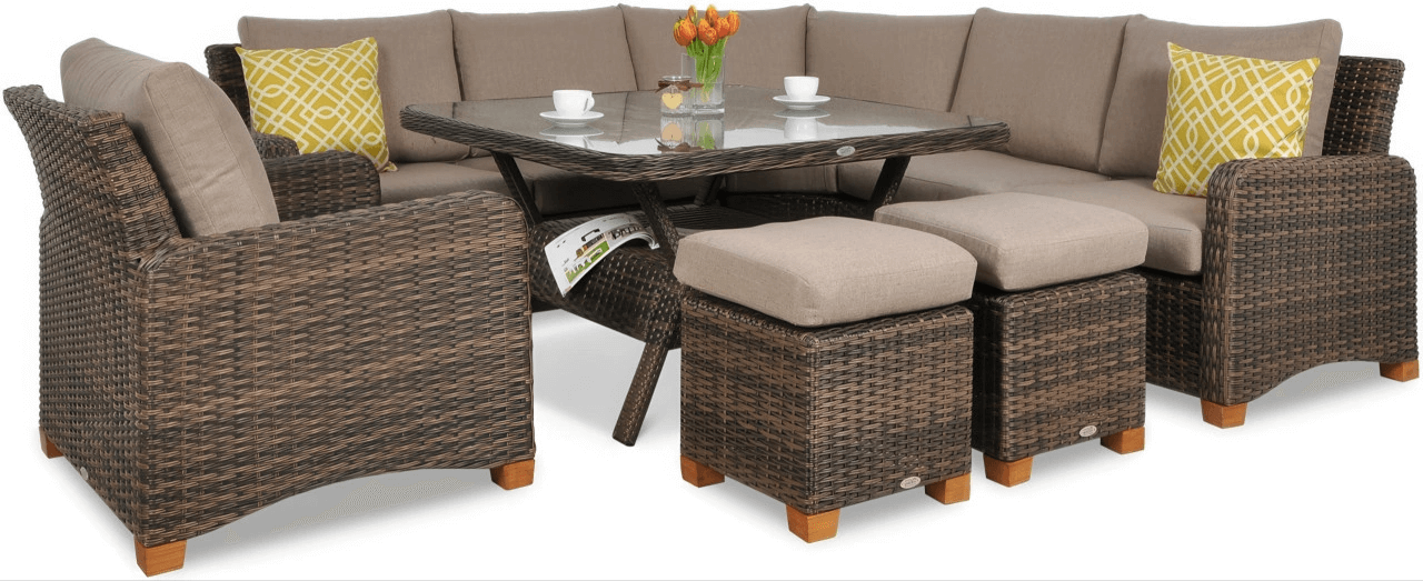 Rohová pohovka Toledo Dining Brown predstavuje spojenie nadčasového dizajnu, luxusného pohodlia a vysokej odolnosti. Táto elegantná sada záhradného nábytku z kvalitného technoratanu je skvelou voľbou aj pre náročných zákazníkov, ktorí hľadajú štýlové riešenie pre svoju terasu, záhradu alebo interiér.