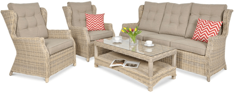 Sada záhradného nábytku z technoratanu, vyrobená vo vysokom štandarde kvality, ponúka spojenie nadčasového dizajnu, pohodlia a dlhej životnosti. Súprava Trivento 3 obsahuje dve veľké, mimoriadne pohodlné kreslá, priestrannú trojmiestnu pohovku a praktický stolík s doskou z tvrdeného skla a odkladacou poličkou. Elegantné operadlá a sedáky vytvárajú harmonický vzhľad a poskytujú maximálny komfort pri odpočinku.