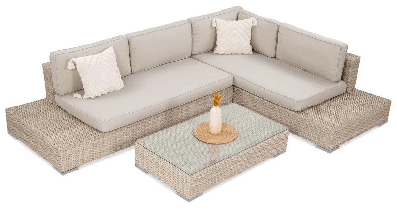 Rohová pohovka VERONA je ideálnou voľbou pre tých, ktorí si potrpia na pohodlie, nadčasový dizajn a jedinečný vizuálny štýl. Kombinuje eleganciu technoratanu s pevnou oceľovou konštrukciou, čo jej dodáva vysokú trvácnosť a stabilitu. Súprava pozostáva z dvoch komfortných modulov a štýlového konferenčného stolíka, vďaka čomu vytvára dokonalé miesto na popoludňajšiu kávu s priateľmi alebo rodinou.