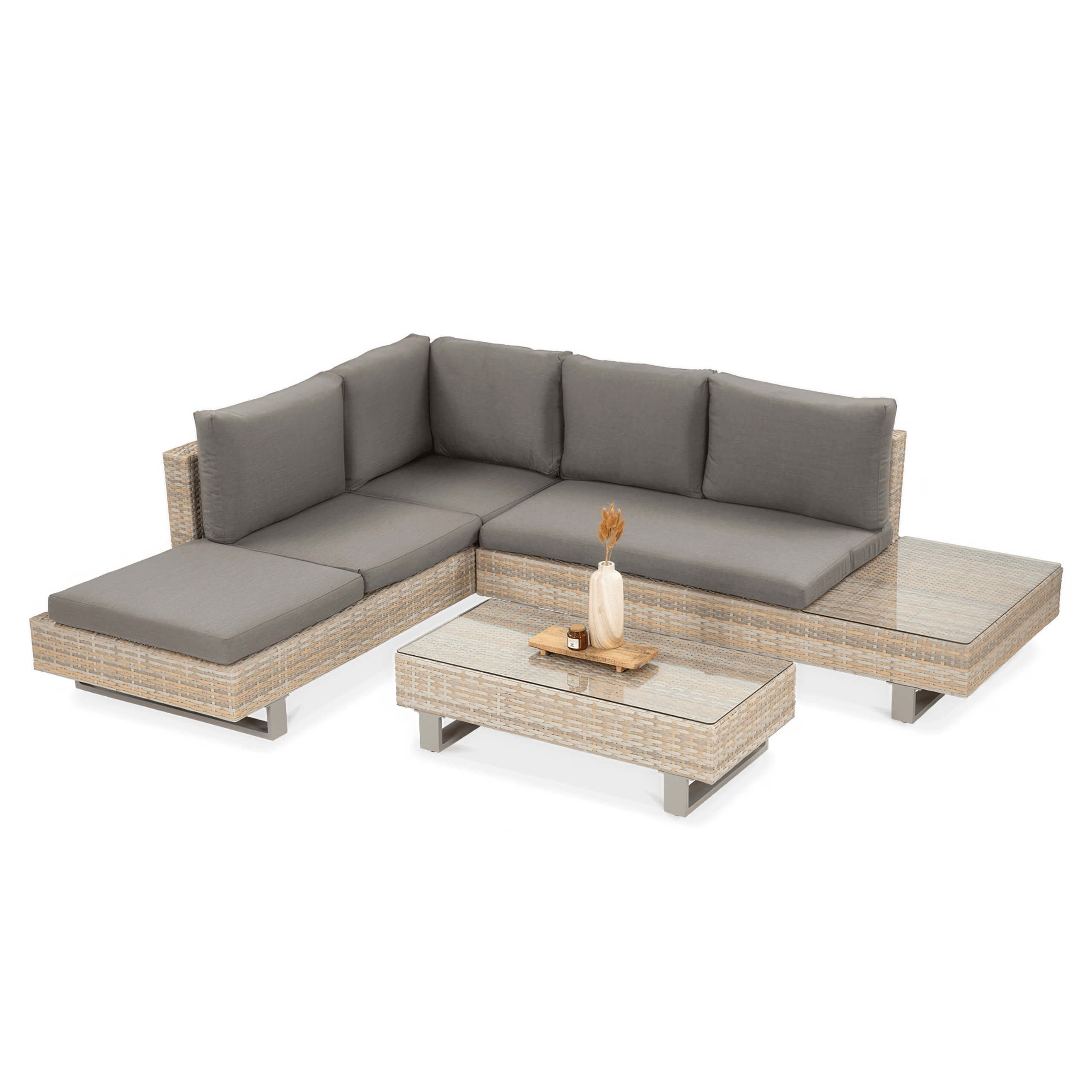 698.37 Vytvorte si dokonalé miesto na relax s exkluzívnou rohovou pohovkou Willis Caffe Nature z kolekcie Focus Garden. Táto súprava spája moderný dizajn, vysokú odolnosť a maximálny komfort – a to spôsobom, ktorý v záhradnom nábytku len tak ľahko nenájdete.