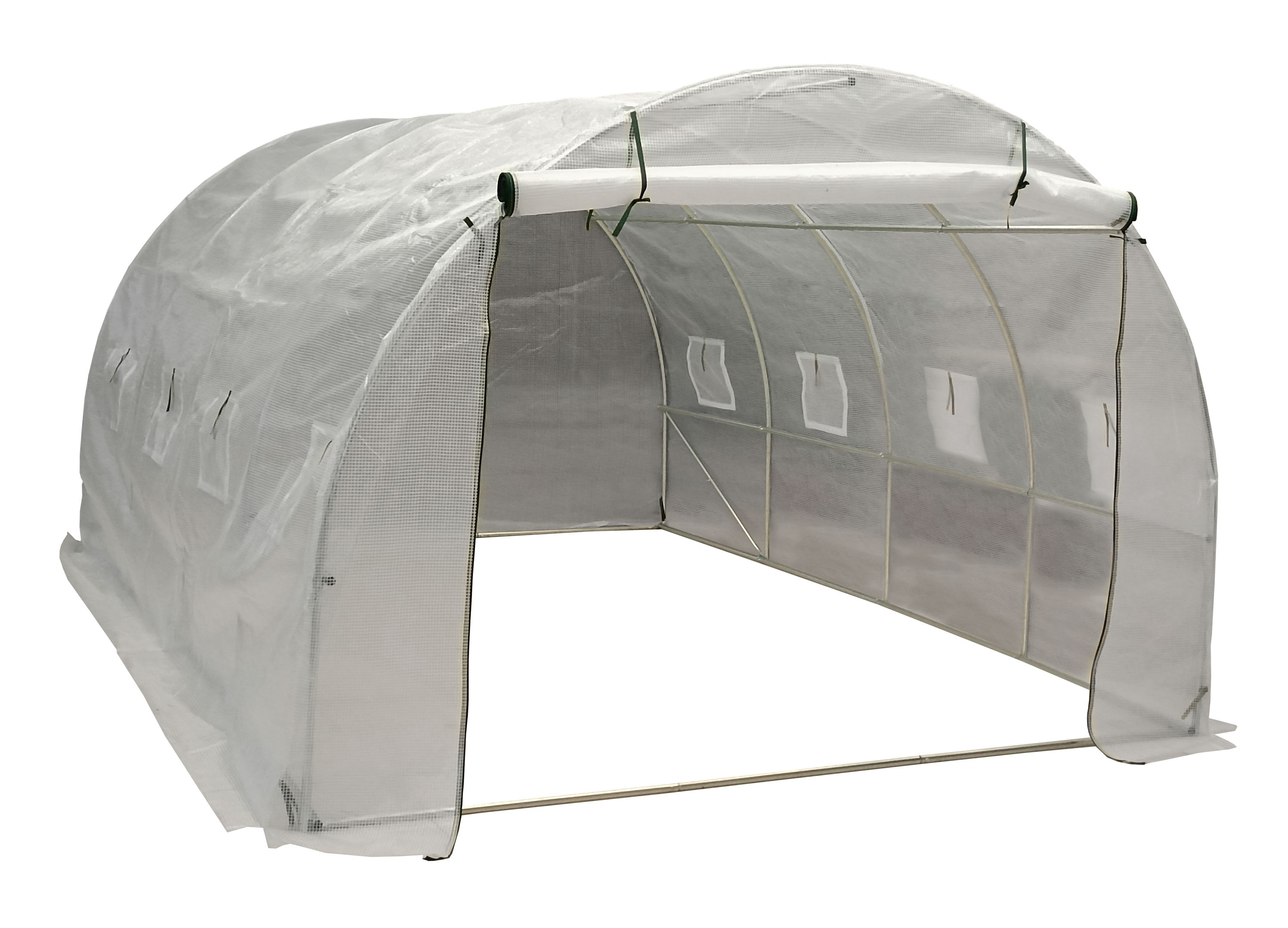 : G21Záhradný fóliovník so stabilnou oceľovou pozinkovanou konštrukciou, kvalitná zosilnená polyetylénová (PE) fólia, čelná stena so vstupným otvorom so šírkou 200 cm, 8 vetracích okien, 4 kotviace lanká a kolíky, rolovací vchod na zips.