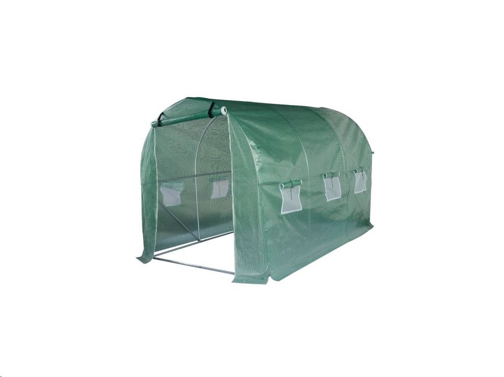 : OEMFóliovník s rozmermi 450 x 200 x 200 cm, ochrana vegetácie pred výkyvmi počasia, vytvorenie vhodnej mikroklímy, 6 menších okien s moskytiérou proti škodcom, predné rolovacie dvere na zips. Galvanicky pozink. oceľ, transparentná kašírovaná fólia. Zelená.