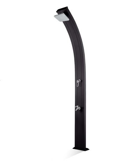 : FormidraSolárna sprcha od talianskeho výrobcu Formidra SPRING v elegantnom zahnutom dizajne inšpirovanom modelom DADA. Vyrobená z hliníka v 30-litrovom prevedení. Samonosná konštrukcia slúži ako zásobník na vodu aj solárny kolektor, ktorý využíva energiu slnka na ohrev vody.