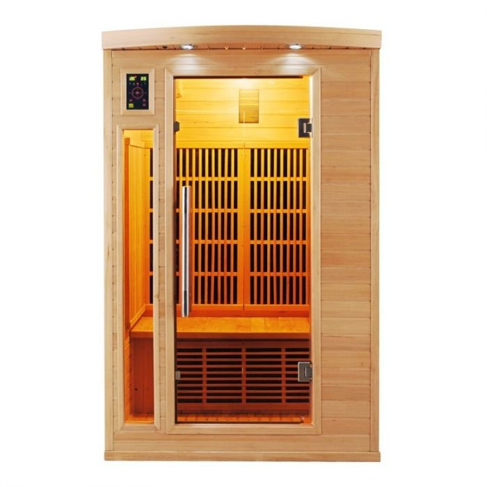 : France SaunaInfrasauna pre 2 osoby vyrobená zo 100% kanadského jedľovca, vonkajšie bledé prevedenie