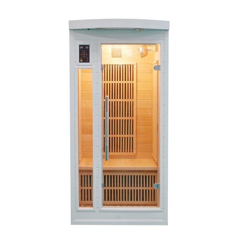 : France SaunaDomáca infrasauna Soleil Blanc 1 predného saunového špecialistov FRANCE SAUNA je určená pre jednu osobu a je vyrobená z kanadského jedlovca v bielej farbe, aby ľahšie zapadla do akéhokoľvek interiéru.