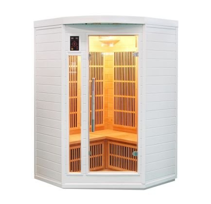: France SaunaRohová infrasauna pre 3 osoby. Vyrobená z kanadského jedľovca v bielom prevedení.