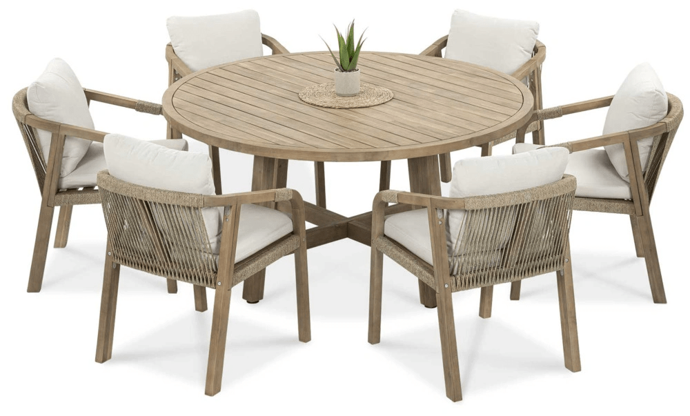 Furrore AMALFI MARIGOLD 6+1 ROUND záhradná jedálenská súprava, natural 005047
