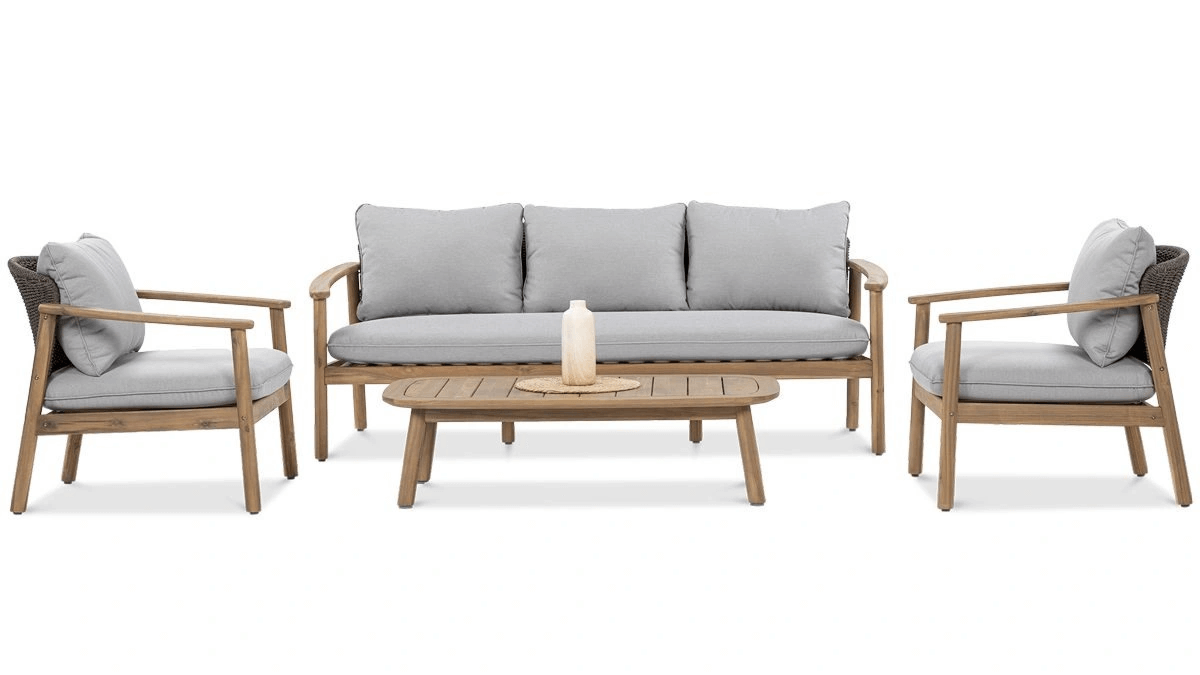 934.15 Súprava Amalfi Caffe od spoločnosti Furrore prináša do obývačky, na terasu alebo záhradu dokonalý balans medzi eleganciou a praktickosťou. Skladá sa z trojmiestnej pohovky, dvoch kresiel a konferenčného stolíka, ktoré spolu tvoria harmonický a pohodlný set.