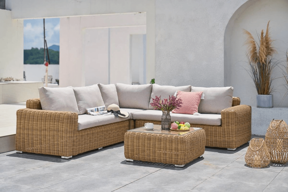Premeňte svoju terasu alebo záhradu na elegantnú oázu relaxu so záhradným rohom JAKARTA CAFFE Beige. Táto modulárna súprava spája moderný dizajn, pohodlie a odolnosť, čím sa stáva ideálnym miestom na oddych aj spoločenské stretnutia.