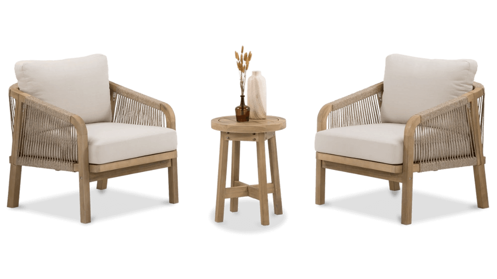 527.64 Objavte jedinečné čaro balkónového nábytku Marigold 2+1 Caffe - Furrore, ktorý spája pohodlie, eleganciu a nadčasový dizajn. Táto kompletná súprava pozostáva z dvoch pohodlných kresiel a stabilného konferenčného stolíka, vďaka čomu je ideálnou voľbou pre balkón, terasu či menšiu záhradu.