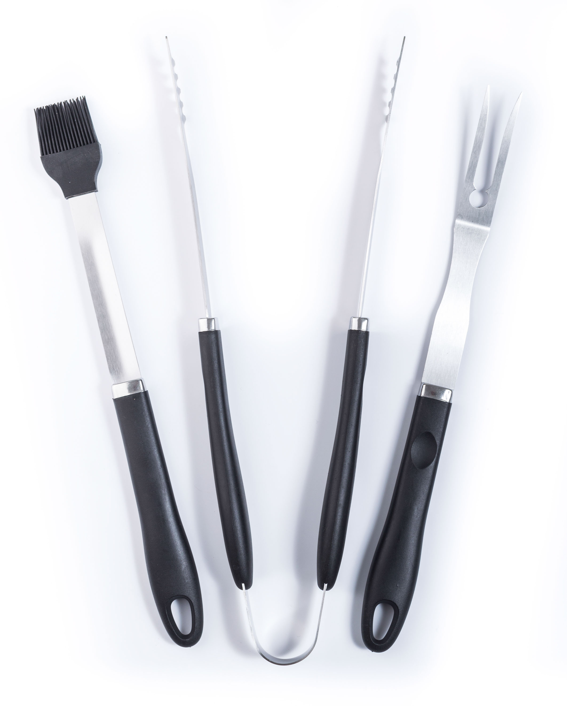 11.63 Nerezové grilovacie náradie G21 s 3 kusmi v sade obsahuje marinovací štetec, grilovaciu vidličku a grilovacie kliešte. Dĺžka náradia je 41 a 45 cm.