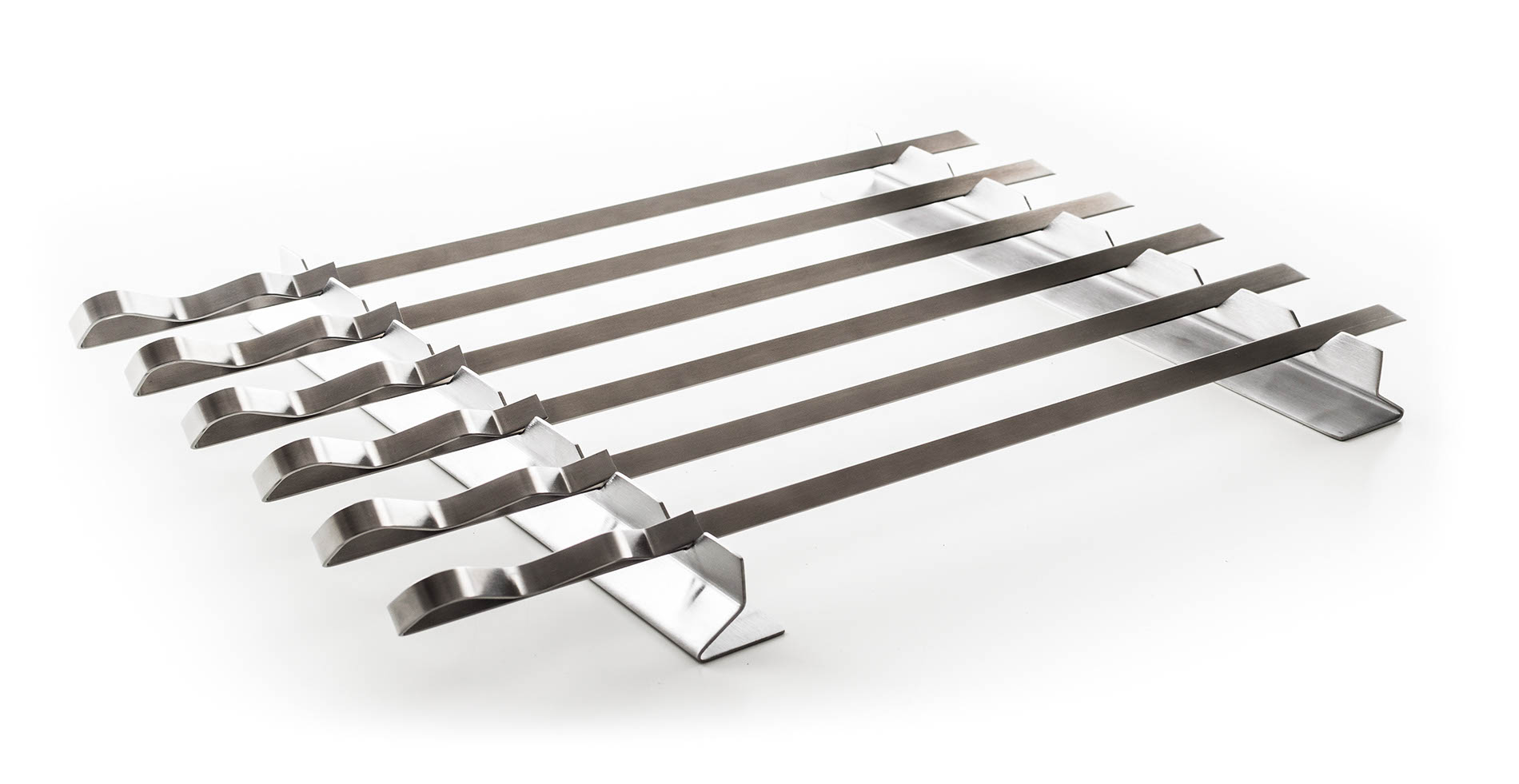 13.66 Sada pre grilovanie G21 pre každú letnú grilovačku. Ideálna pre prípravu kebabu či špízov z mäsa a zeleniny. V balení je 6 ihiel s dĺžkou 43 cm a 2 stojančeky. Kvalitná nerezová oceľ, odolná voči vysokým teplotám aj priamemu žiaru. Matná strieborná.