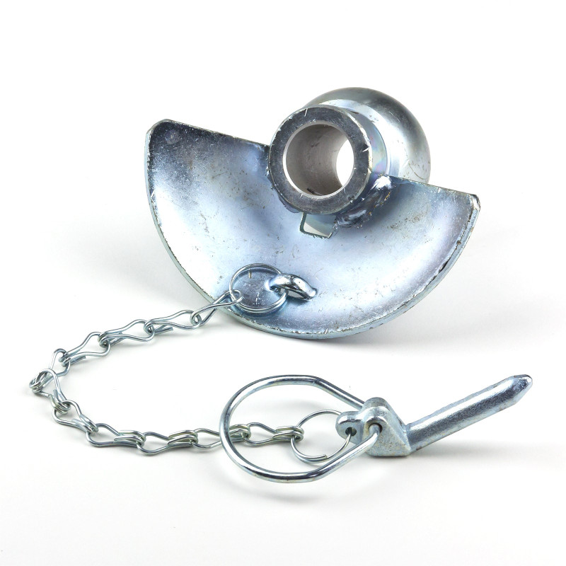 : DEMAPrípojná guľa s golierom na spodné rameno pre traktory kategórie II a III. Galvanicky pozinkovaný kov.