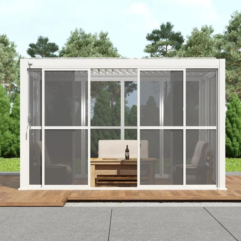 Polykarbonátové posuvné dvere Gutroof Premium 3 m sú ideálnym riešením pre pergoly s bočnou stenou s dĺžkou 3 metre. Vďaka kombinácii odolného hliníkového rámu s práškovou povrchovou úpravou a pevného priehľadného polykarbonátu poskytujú vynikajúcu ochranu, súkromie aj estetickú hodnotu.