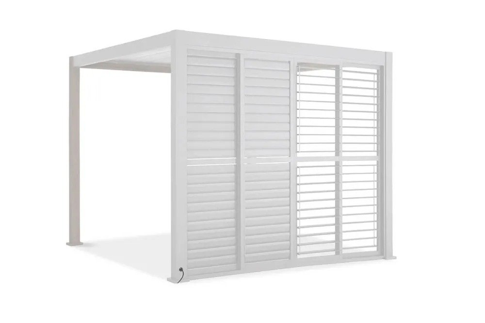 Posuvné žalúziové dvere Gutroof Premium 3 m v elegantnej bielej farbe predstavujú spojenie moderného dizajnu, praktickosti a prémiovej kvality. Sú navrhnuté špeciálne pre pergoly série Premium 3 a poskytujú vysoký komfort používania aj ochranu pred nepriaznivým počasím.