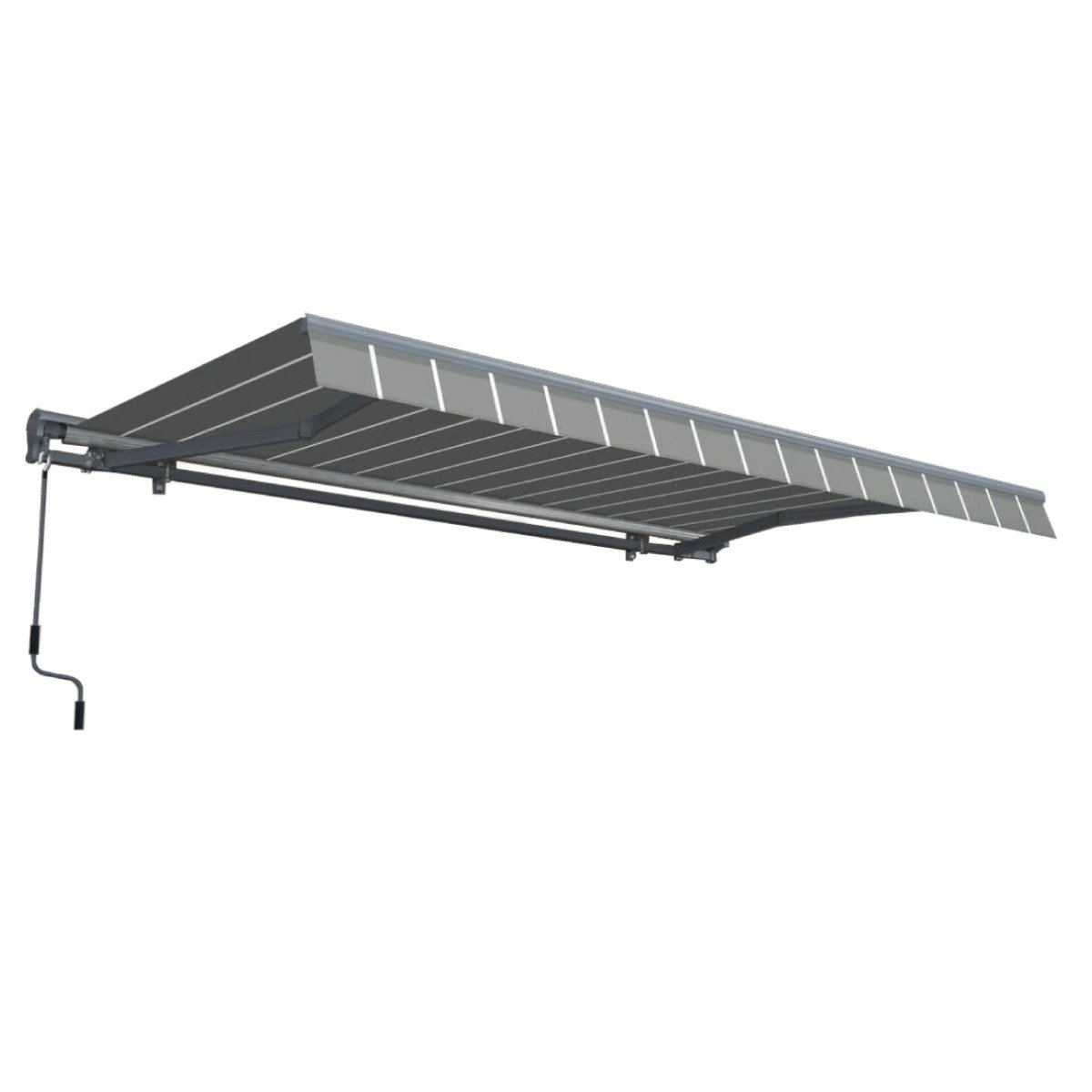 Objavte jedinečnú manuálnu terasovú markízu Gutroof PREMIUM v elegantnom sivo-bielom odtieni. Tento model kombinuje praktickosť, odolnosť a estetiku, vďaka čomu je ideálnym doplnkom každej terasy.