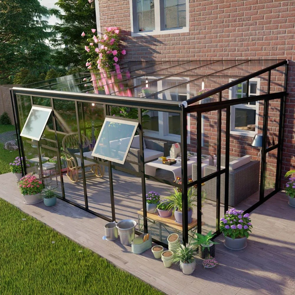 Zimná záhrada SOHO Black s rozmermi 434 × 290 cm je ideálnym riešením pre každého, kto hľadá elegantný, funkčný a odolný priestor využiteľný počas celého roka. Robustná konštrukcia z práškovo lakovaného hliníka zabezpečuje vysokú odolnosť voči korózii a nepriaznivým poveternostným podmienkam, zatiaľ čo 4 mm tvrdené sklo v stenách spája bezpečnosť s estetickým vzhľadom. Strecha z 6 mm bunkového polykarbonátu účinne filtruje UV žiarenie a chráni interiér pred prehrievaním.