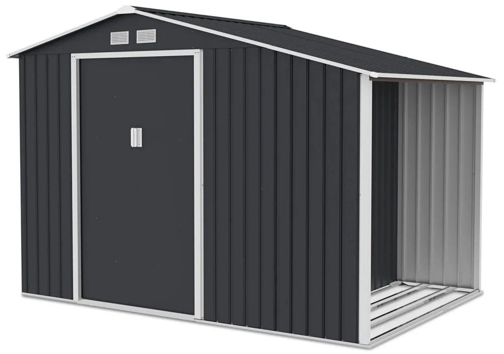 Záhradný domček Hardmaister MADISON s praktickou drevárňou je ideálnym riešením pre tých, ktorí hľadajú funkčné a odolné úložné priestory do záhrady.