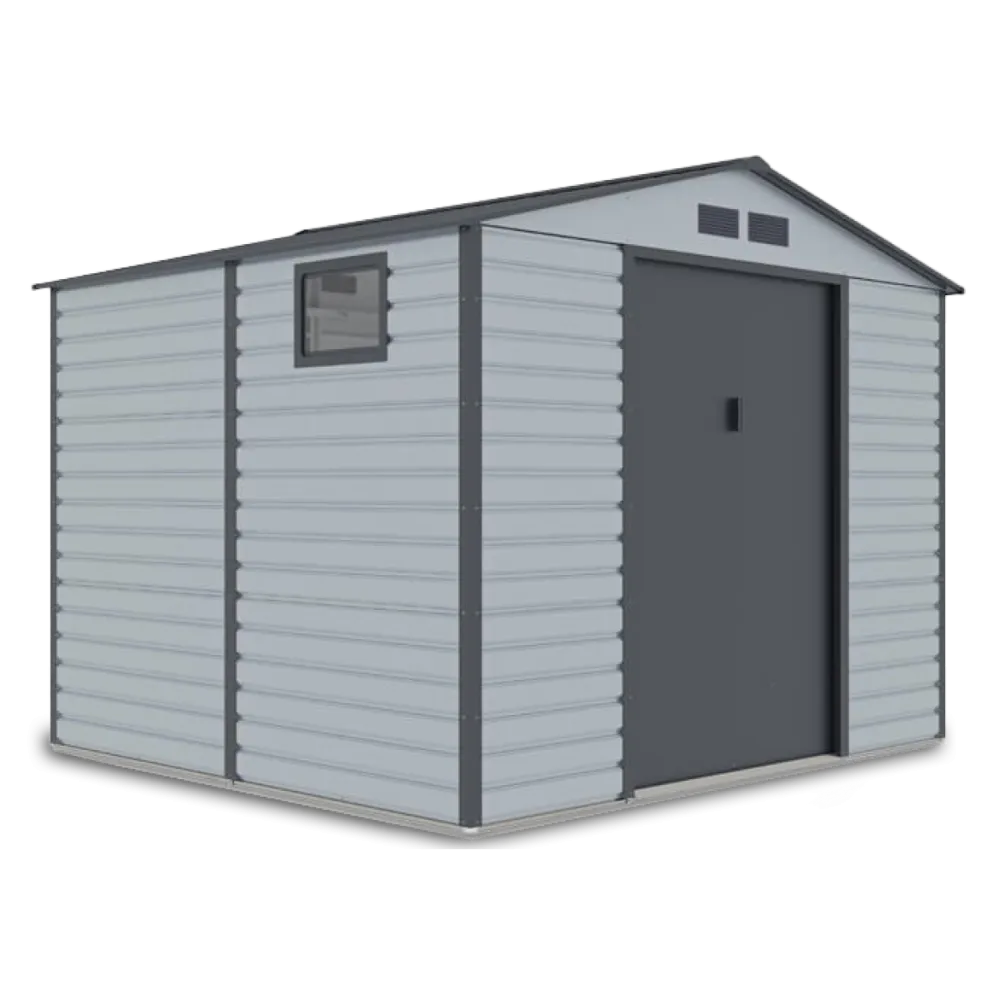 Záhradný domček MONTREAL je praktické a štýlové riešenie na uskladnenie záhradného náradia, bicyklov či iného vybavenia. Jeho pevná konštrukcia z pozinkovanej ocele a panely z žiarovo pozinkovaného plechu (hrúbka 0,25 mm) zabezpečujú dlhú životnosť, vysokú odolnosť voči korózii a nepriaznivým poveternostným podmienkam.